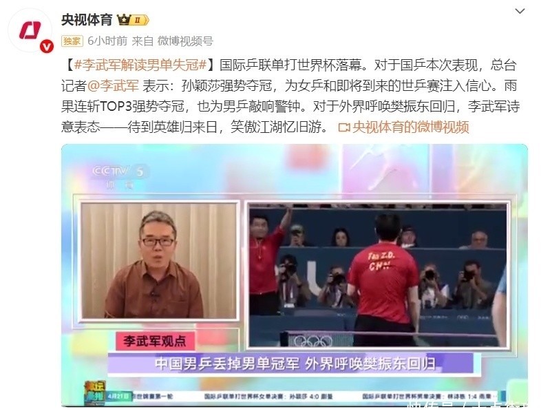 本届澳门寰球杯以一场历史性的冷门放胆,巴西选手雨果·卡尔德拉诺连克寰球排行前三的张本智和、王楚钦和林诗栋,成为首位夺得乒坛三大赛冠军的南好意思指令员,授奖仪式上,巴西国歌初次在乒乓球寰球大赛中奏响,而国乒男队三位主力站在雨果傍边的画面,也让多数中国球迷发出叹气,央视体育总台记者李武军在赛后也坦言:“雨果连斩TOP3强势夺冠,也为男乒敲响警钟。”他更以“待到好汉归来日体育集锦,笑傲江湖忆旧游”的诗意招呼,将公论焦点引向已淡放洋际赛场近8个月的樊振东,这位“超等全满贯”得主的缺席,为何成为国乒失冠后最激烈的民心诉求?