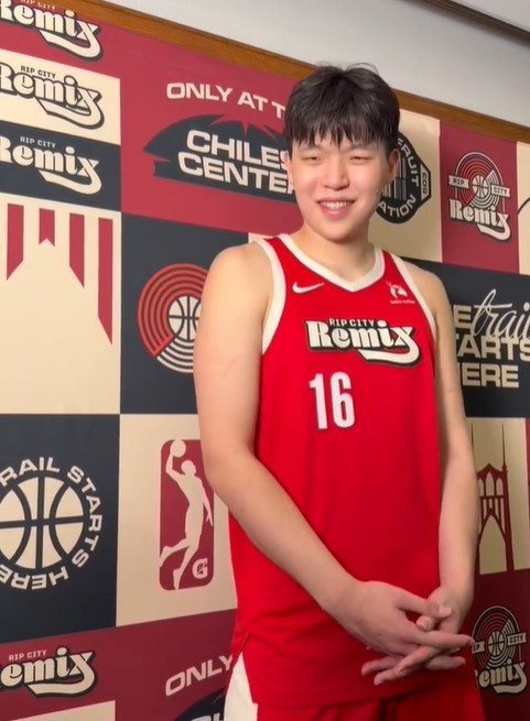 直播吧12月16日讯G联赛开季赛,扯破之城混音队主场116-110斯托克顿国王队,赛后杨瀚森收受了媒体采访。
