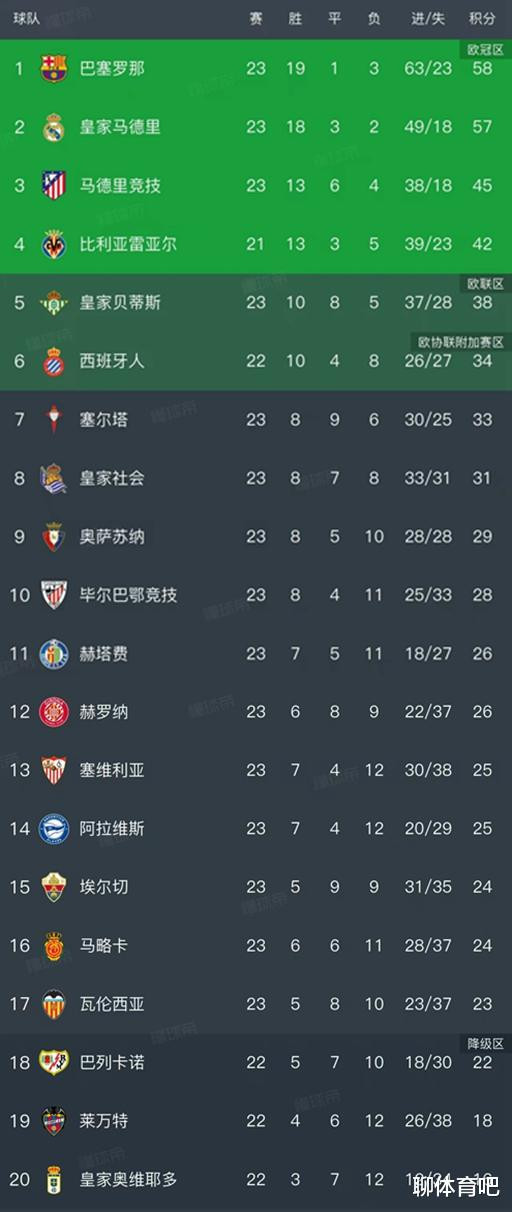 北京时刻2月9日,跟着皇马2-0瓦伦西亚、马竞0-1不敌皇家贝蒂斯,西甲第23轮边界了8场比赛,咱们望望最新积分榜变动!