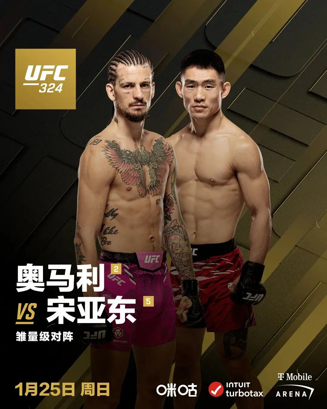 北京时辰 2026年1月25 日体育录像/图片,UFC 324 中宋亚东行将对决前级别冠军“蜜糖”肖恩·奥马利。