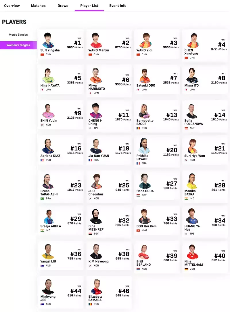 WTT官方阐明注解,于昨日公布的强制性参赛限定修改等要紧优化设施首个适用赛事为2025年4月1日-6日举办的WTT仁川冠军赛。