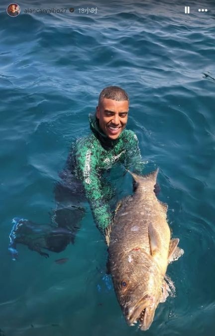直播吧9月24日讯 36岁的前国足归化阿兰更新社媒,晒出我方拿获一只巨型石斑鱼的相片。