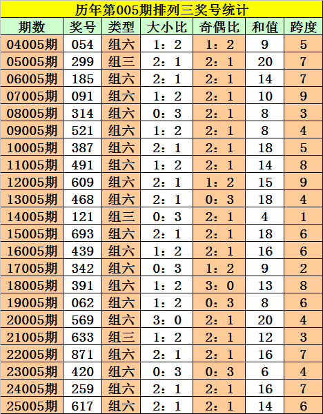 积年第005期奖号中:组三开出3次,组六开出19次。组六较着活跃,本期情态组六。