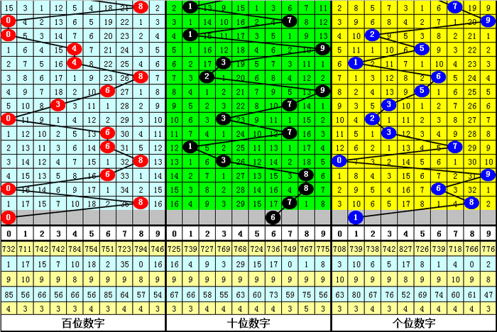 积年第005期摆列三奖号中,开出次数最多三码为:0、1、9,本期耀眼号码:0。